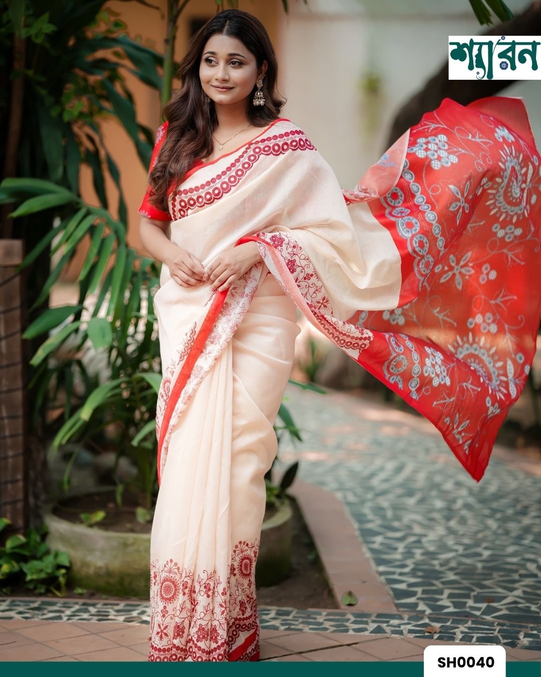 Elevate your ethnic wardrobe with this stunning 13 Hat saree made from luxurious Chandni Silk, featuring elegant digital prints in rich red and cream tones. Designed for graceful occasions, the saree beautifully blends traditional motifs with modern sophistication.