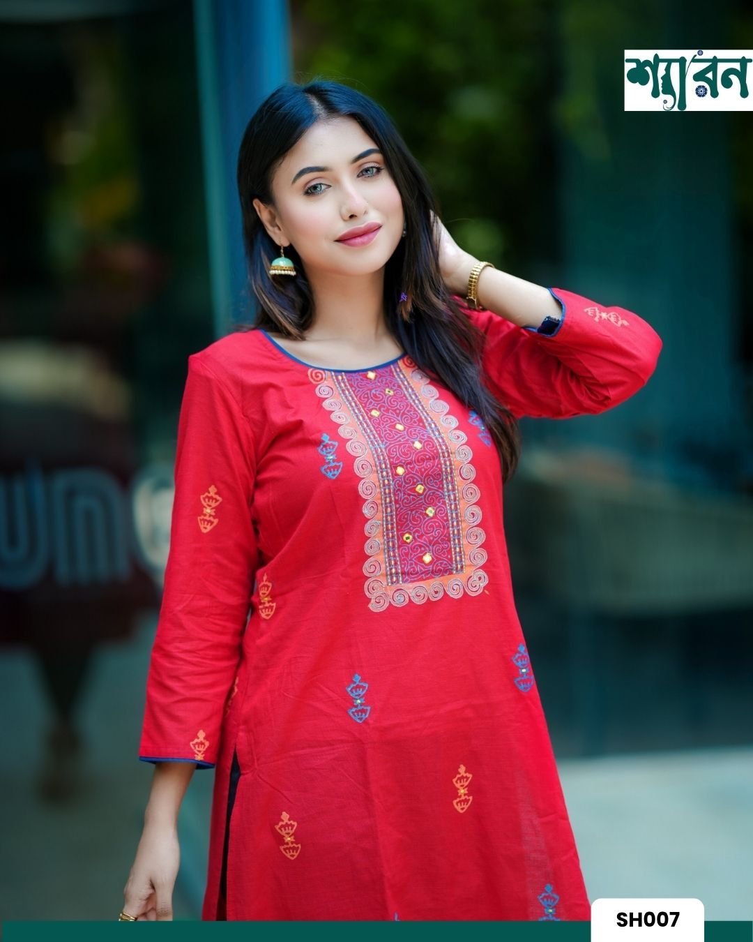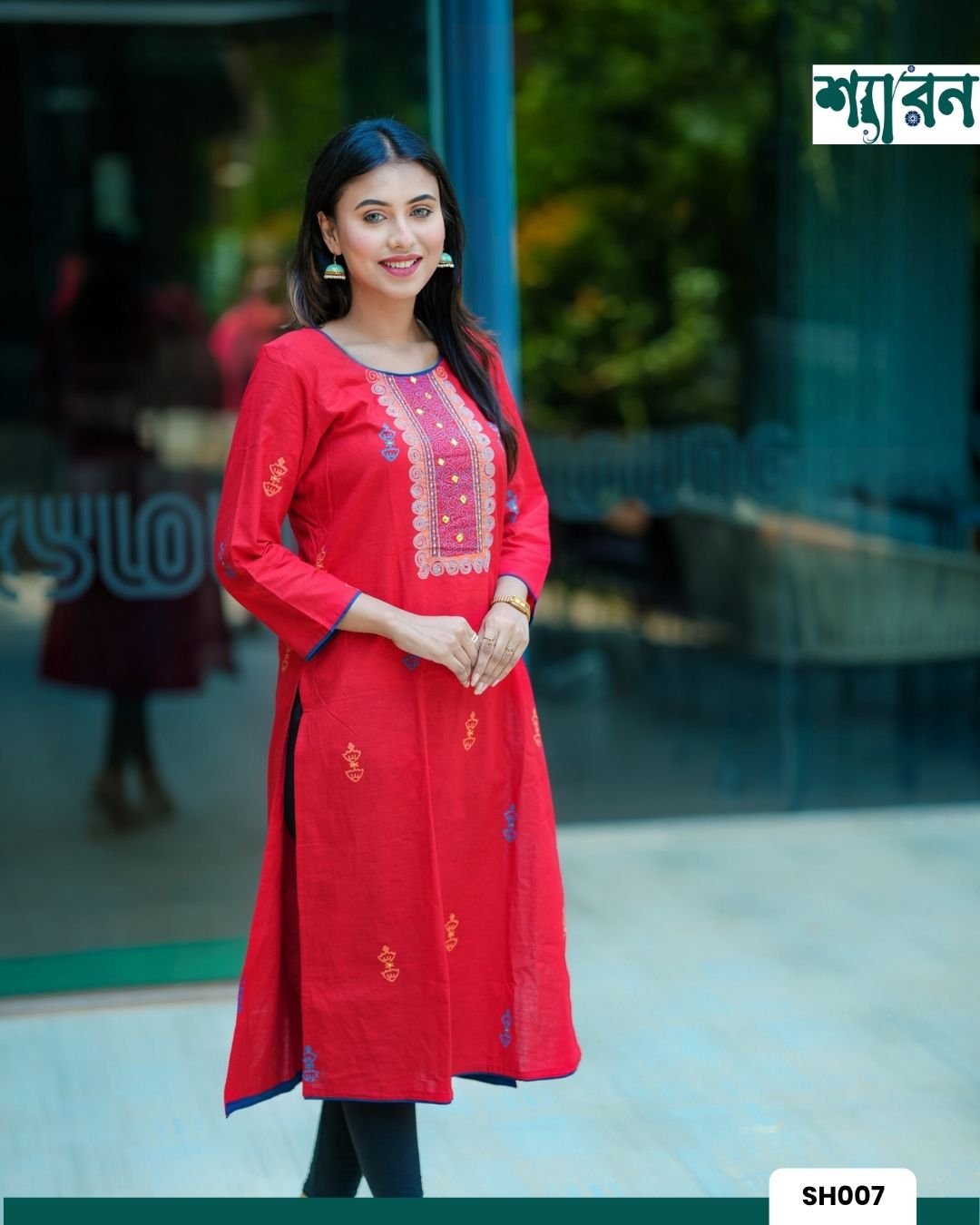 Perfect for Puja celebrations, cultural events, or casual outings, its vibrant red shade ensures you’ll stand out in every occasion.