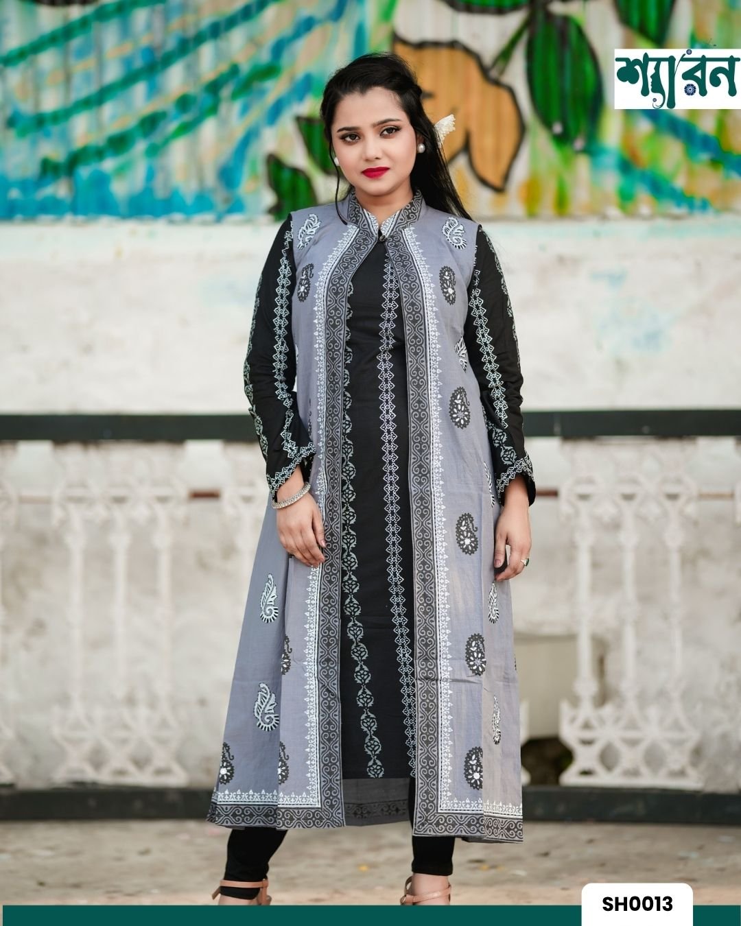 Inspired by Aarong-style handwork, both pieces showcase exquisite hand-stitched embroidery and traditional block prints, combining artisanal charm with modern sophistication. Perfect for casual gatherings, festive occasions, or elegant everyday wear.