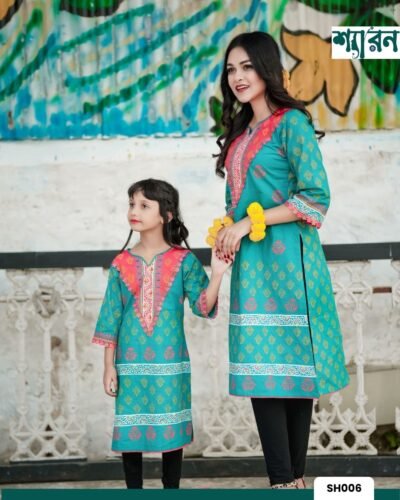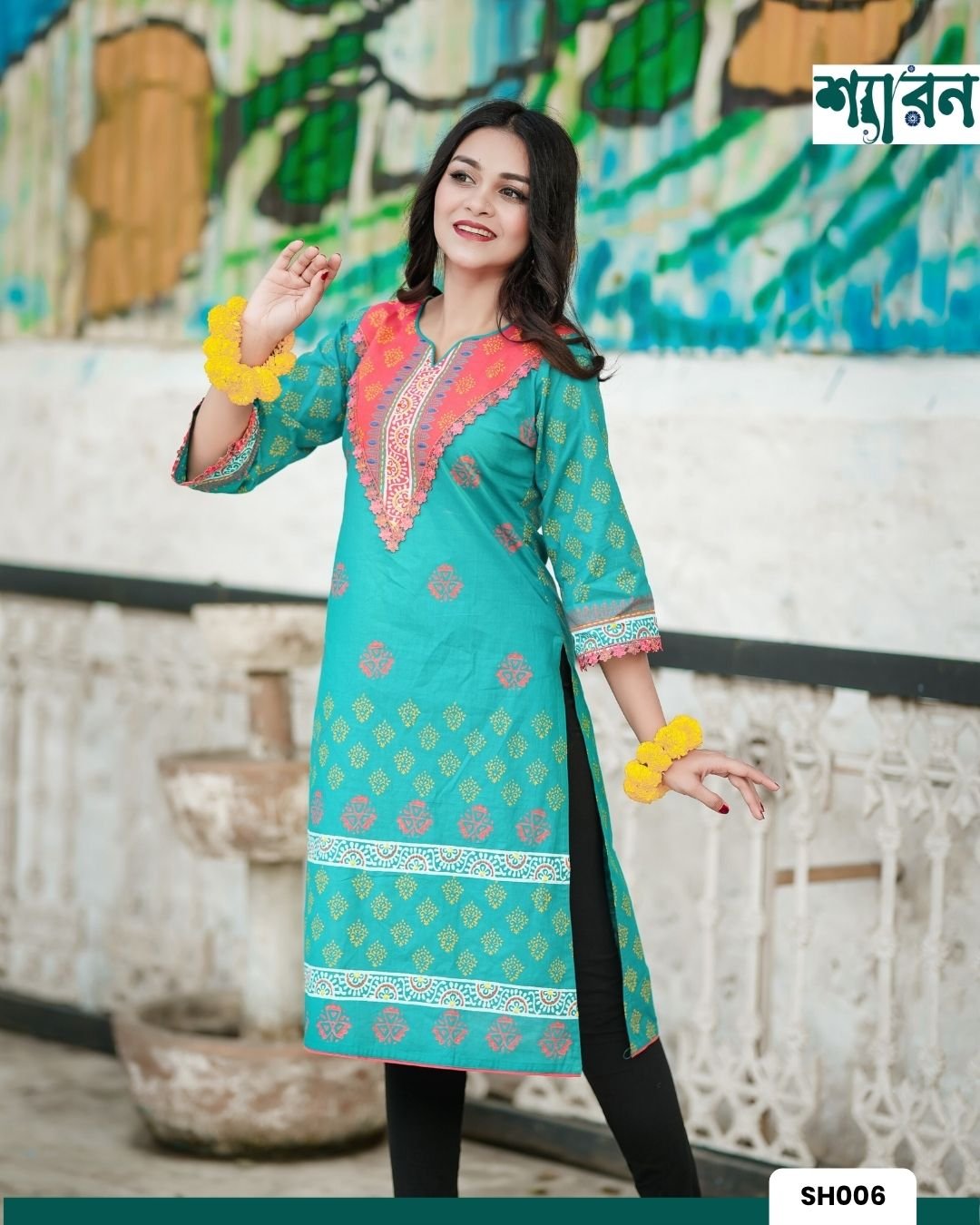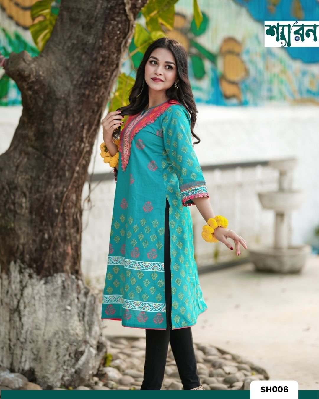 Add a refreshing touch to your wardrobe with this Aqua Matching Kurti, crafted from 100% premium slub cotton. The fabric ensures 100% color retention with no chance of fading, making it both durable and vibrant.