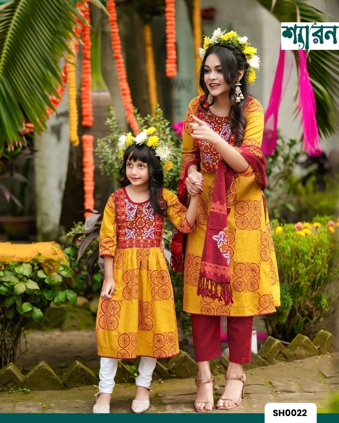 Design: Aarong-style hand work with block print